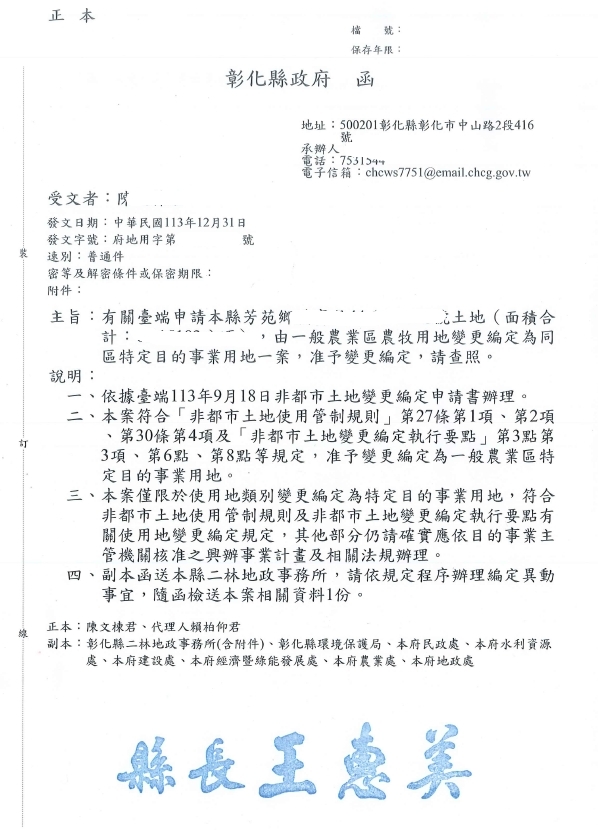 成功案例分享恭喜 芳苑威武宮 變更寺廟用地變更編定完成(農地變建地)!!!